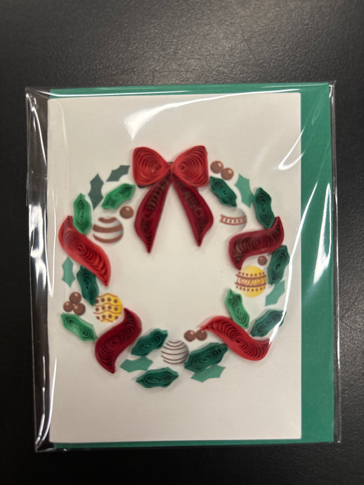 Quilling Gift Card, Holiday awreath w/Ornaments