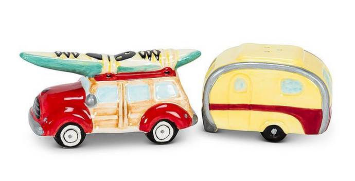 Salt & Pepper Shaker, Woody Car and Camper
